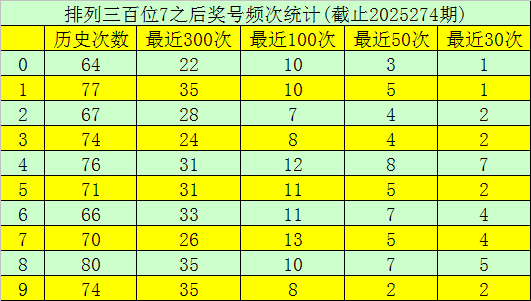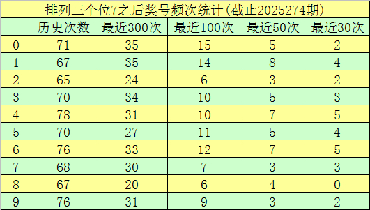 第三位开奖7在最近三次之后,下期落号分别为:2-7-7,奖号出现在:冷号区段、冷号区段、冷号区段,本期第三位关注冷号区段奖号,注意热码区段号码逐渐转冷本期轮空。